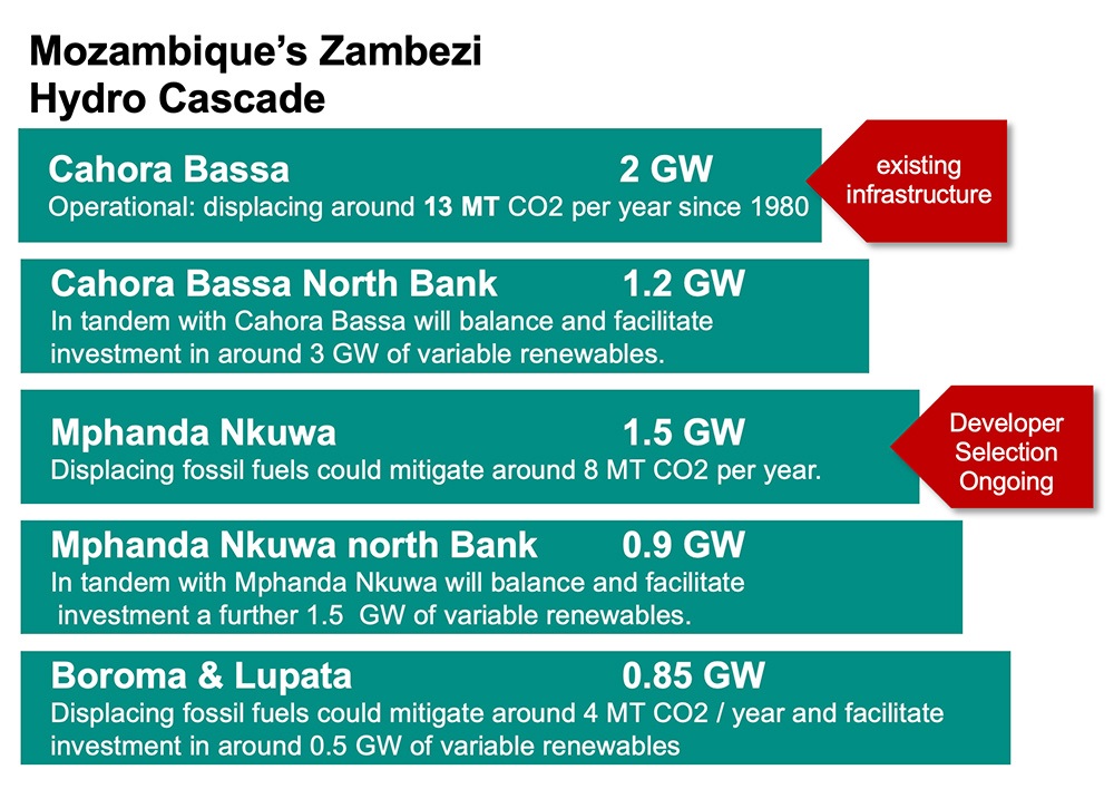 “The entire hydro cascade along the Zambezi River could: displace up to 7 GW of coal, spur further investment in solar and wind, drive green industrialisation and mitigate large scale annual emissions”.