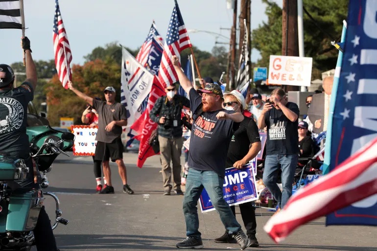 US President Donald Trump, who is in hospital with COVID-19, was driven outside the facility on Sunday so he could wave to a group of supporters on the street in a move critics derided as a dangerous political stunt.