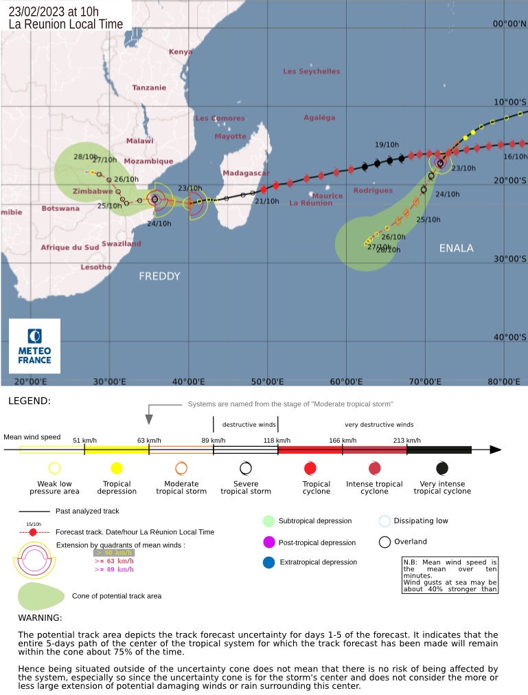 As forecast, tropical cyclone Freddy left Madagascar and entered the Mozambique Channel at around midday on Wednesday.