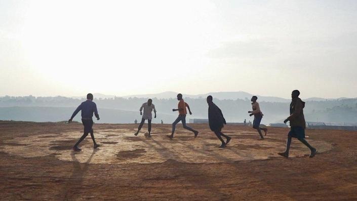 “When I’m free, I go play football,” he said. “We collect the bags and ropes to make a football. Sometimes we also play card games.”