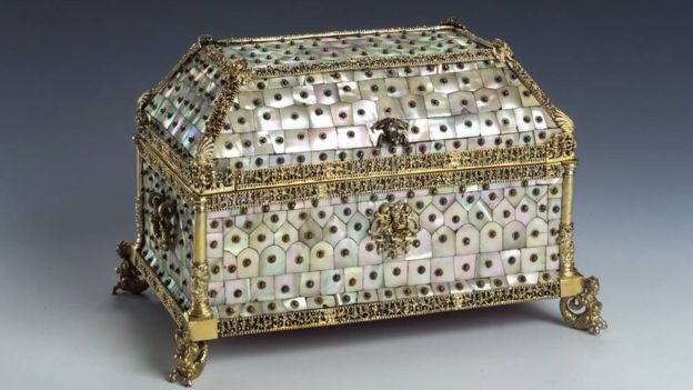 There are about 3,000 items of jewellery and other treasures decorated with gold, silver, ivory and pearl. They include a figure of a moor studded with emeralds and a 648-carat sapphire – a royal gift from Russia’s Tsar Peter the Great.