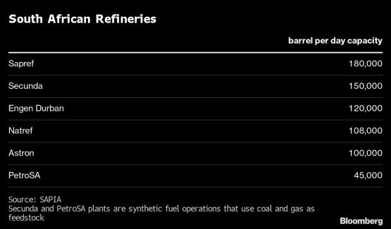 Most of South Africa’s refineries halted production temporarily last year as lockdown measures to control the Covid-19 pandemic eroded fuel demand. Glencore unit Astron Energy’s Cape Town plant was shut by an explosion in July and is expected to resume production some time in 2022. Engen restarted until a fire broke out in December, forcing it to shut again.