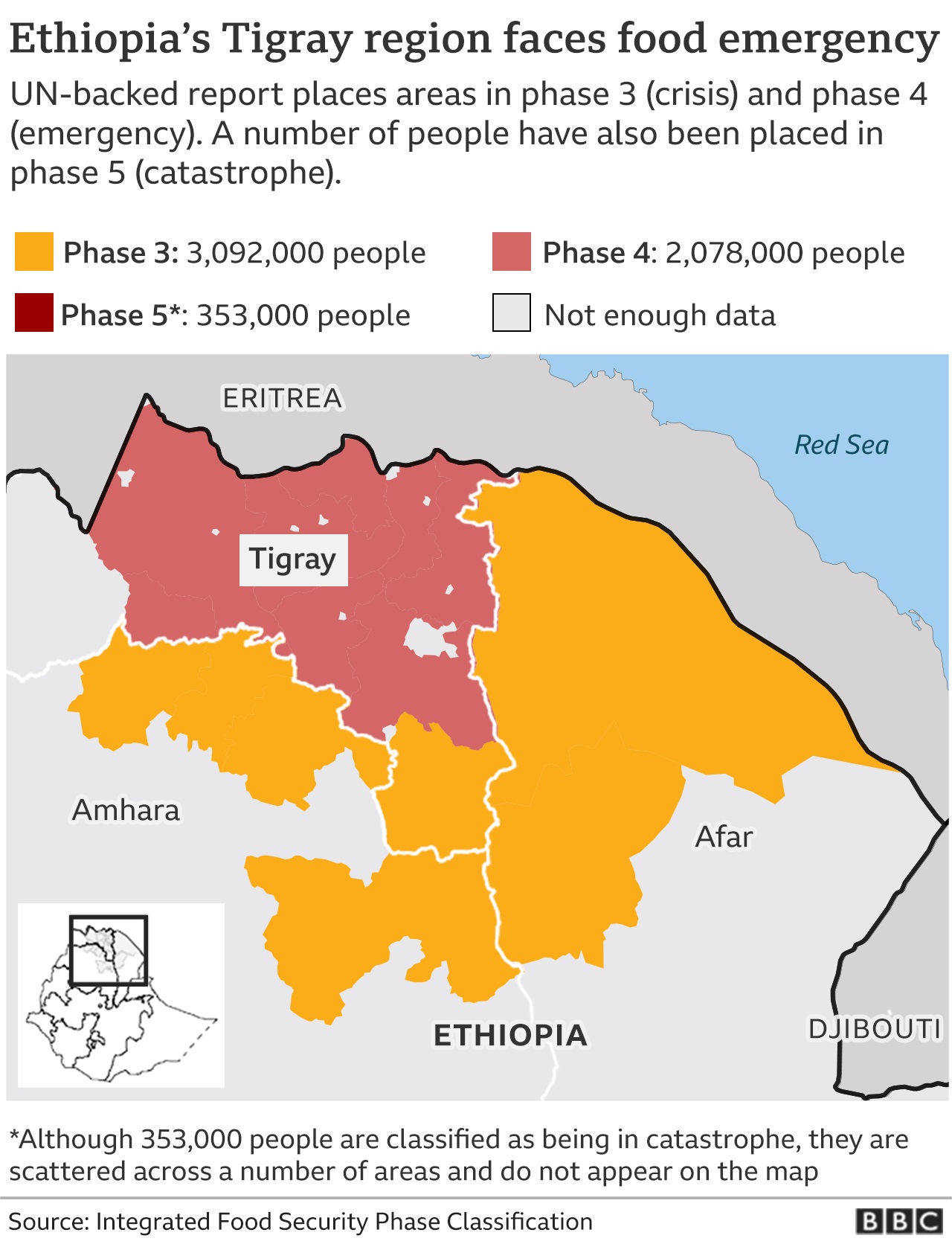 Earlier this month, the UN described a situation of famine in northern Ethiopia. It said the food situation had reached the level of a “catastrophe”, which it defines as starvation and death affecting small groups of people spread over large areas.