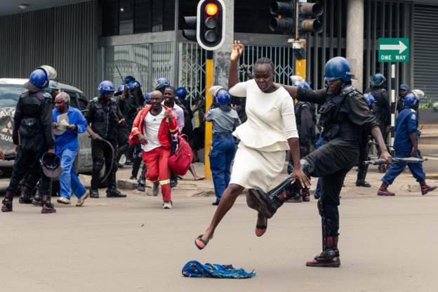 On Wednesday, violently dispersed a crowd near the headquarters of the opposition MDC
