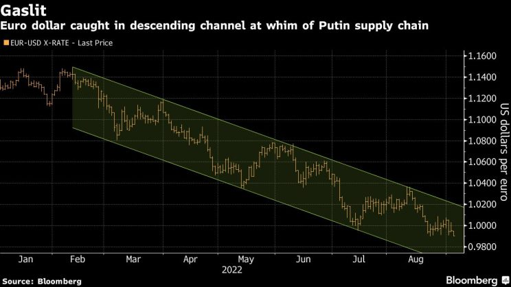 The energy crisis has been deepening since Russia’s invasion of Ukraine pushed commodity prices sharply higher and damaged relations between the Kremlin and Europe. This was a significant factor pushing the euro to parity with the dollar last month for the first time in two decades. The new strains on energy supplies ahead of the winter threaten to put a further drag on the regional economy at a time when soaring consumer prices are putting pressure on the ECB to tighten monetary policy.