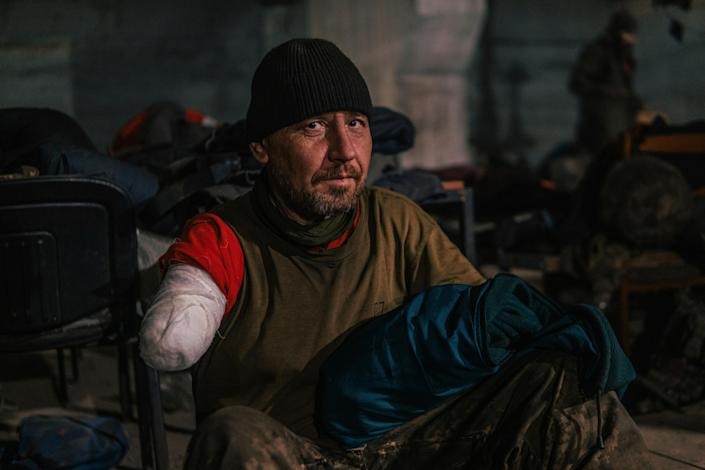 In this photo provided by Azov Special Forces Regiment of the Ukrainian National Guard Press Office, an Azov Special Forces Regiment's serviceman, injured during fighting against Russian forces, poses for a photographer inside the Azovstal steel plant in Mariupol, Ukraine, Tuesday, May 10, 2022. [Photo: Dmytro 'Orest' Kozatskyi/Azov Special Forces Regiment of the Ukrainian National Guard Press Office via AP]