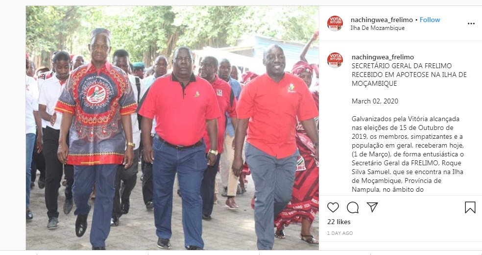 Meanwhile, “Nachingwea Frelimo”, on its Instagram page, also brings a report on the visit of the Frelimo Secretary General.