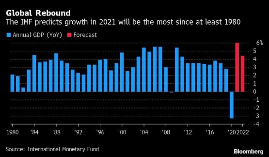 The spread of cases threatens what’s forecast to be a V-shaped recovery for global growth, led by the US and China. The IMF currently expects the world economy to grow 6% this year, the most in four decades of data. But it knows the longer the pandemic runs the harder it will be to meet that forecast.