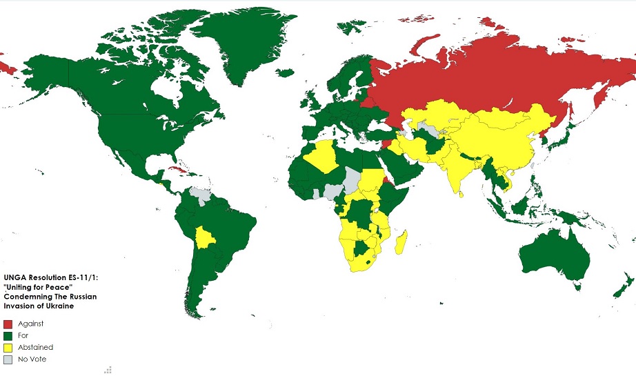 from this map you can easily understand who voted for, against and abstention #UNGA #Russia #India #Ukriane pic.twitter.com/Wx0OeHE9IJ