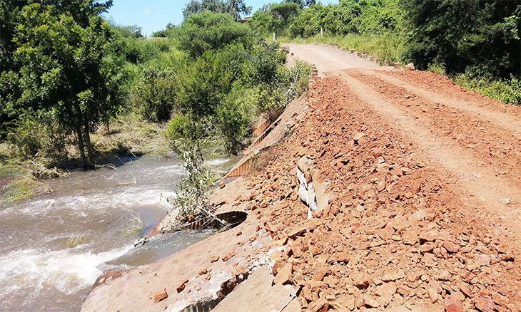 A South African company, ‘Três Rios’, which grows and exports lychees and tomatoes from Catuane, devised a provisional solution which consisted of placing stones and sandbags on the structure that had given way.