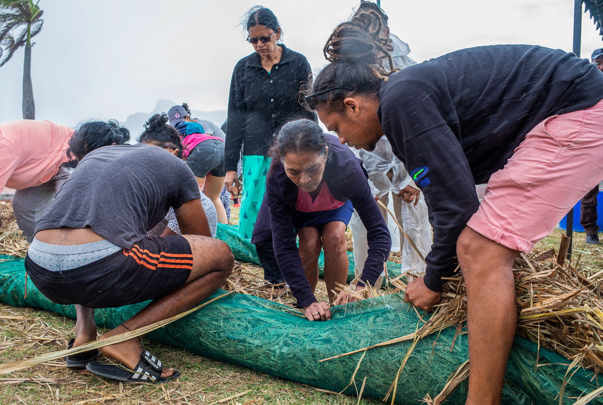 Mauritians are making booms out of sugar cane leaves, plastic bottles and hair that people are voluntarily cutting off and floating them on the sea to prevent the oil spill spreading, island resident Romina Tello told Reuters.