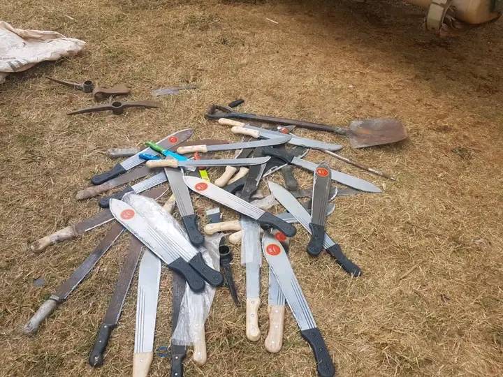 Images circulating on social media show a group of young people in Balama PRM district command with, by their side, the more than 40 machetes seized and the vehicle they were travelling in.