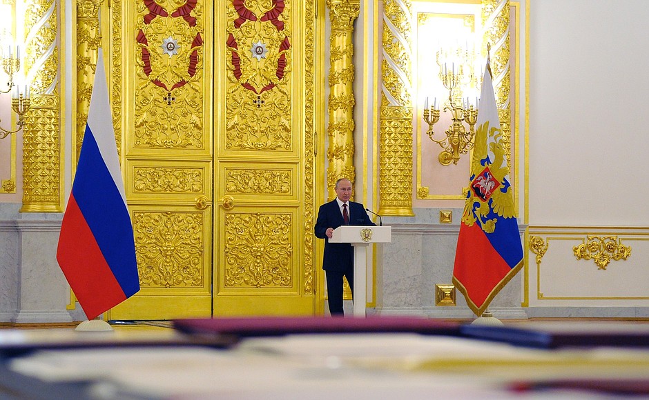 Given that the epidemiological situation is still complicated, this event is being held with certain protocol restrictions and adjustments. I think you understand the importance of the format of today’s meeting. But what is most important is that we are meeting at the Kremlin and I can personally congratulate you on officially commencing your diplomatic activities here in the Russian Federation.