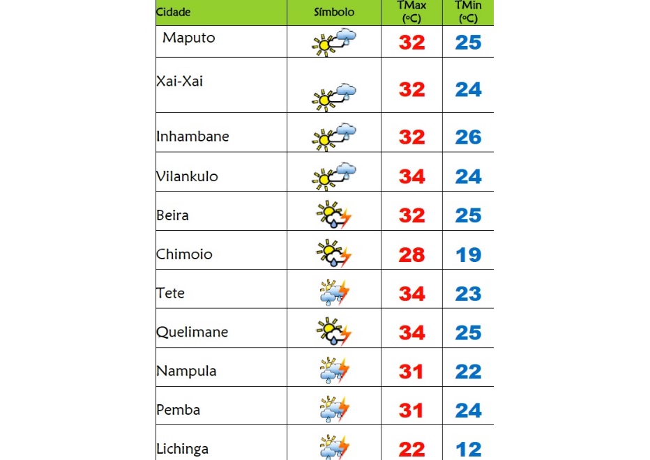 Meanwhile, INAM weather forecastsfor this Wednesday (25), the 280th day of Public Health Emergency in Mozambique, are:
