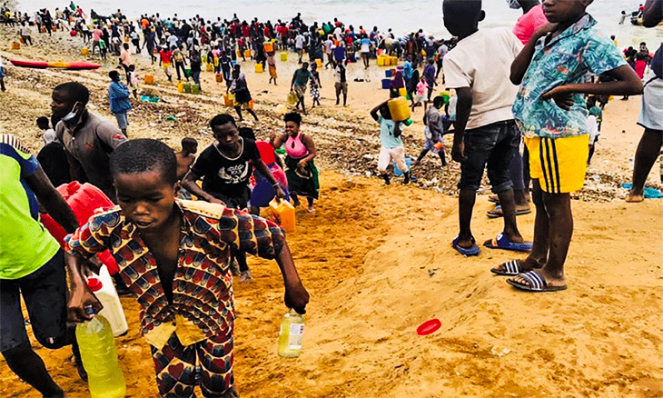 After the spill, and despite the imminent risk of a potentially tragic fire, children and adults, men and women flocked to the beach near the port of Pemba on Saturday to collect the fuel.