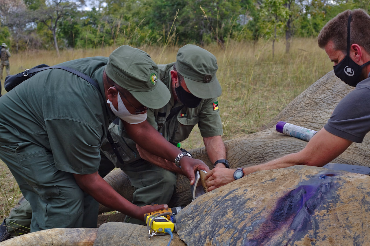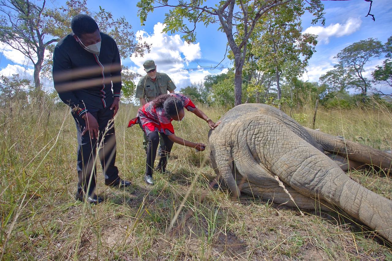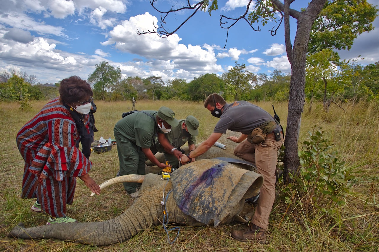 President Filipe Nyusi and the technical team of the collar exchange operation made the decision to put the collar on another elephant.
