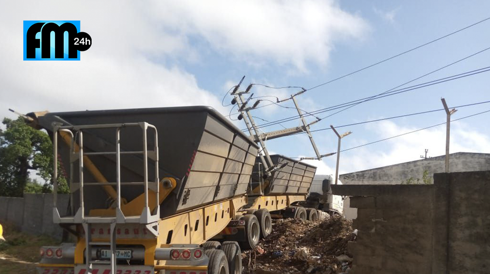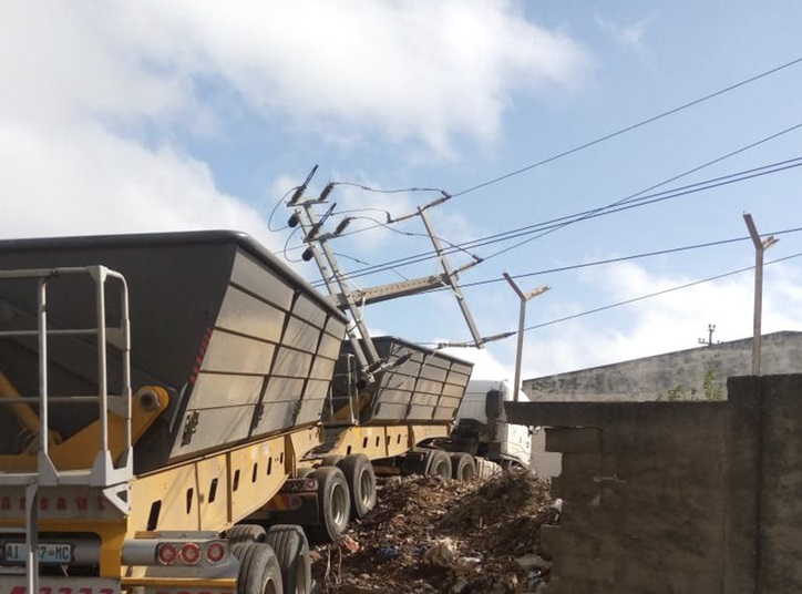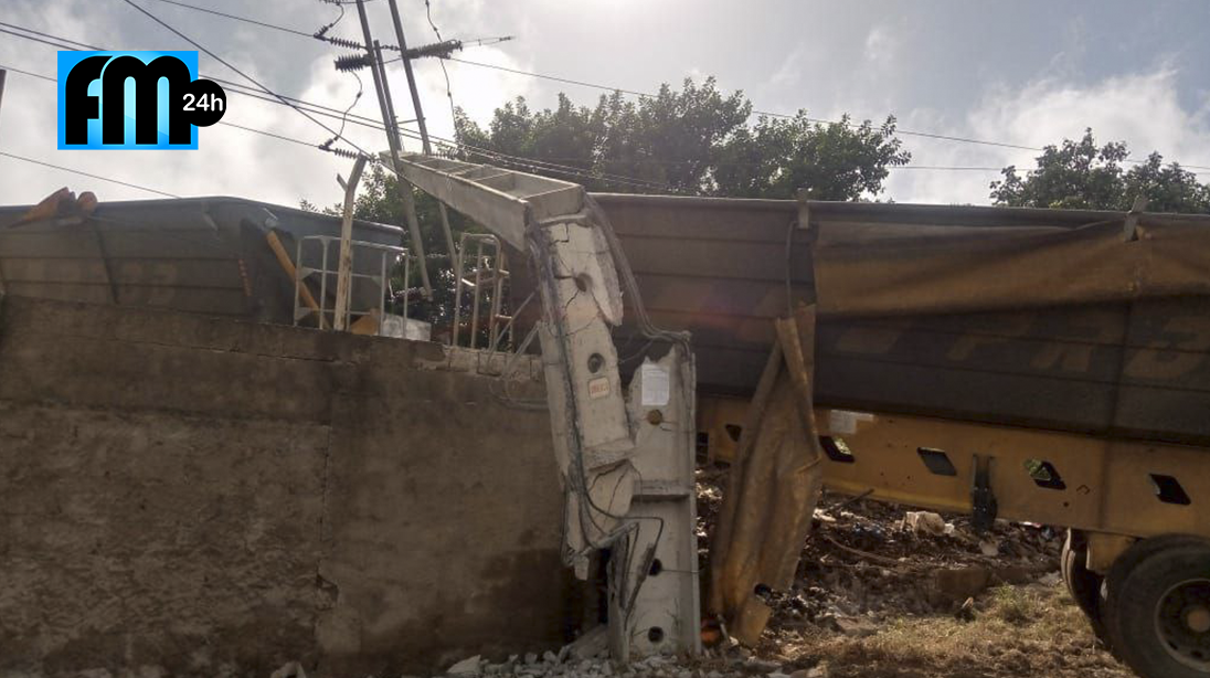 A lorry which skidded off National Highway Number 4 (EN4) destroyed a public lighting pole, a medium-voltage electricity pole and the wall of a company premises, Miramar reported this Thursday.