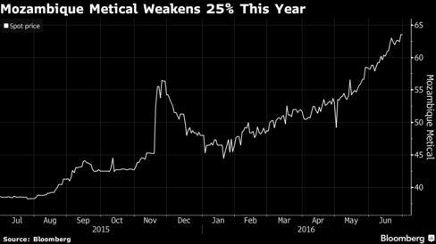 Declining investment and the fact that donors froze disbursement of about $500 million worsened the coal-producing nation’s balance of payments and increased pressure on the exchange rate, he said. Mozambique spends about US$7 billion annually on imports. The currency has lost a quarter of its value against the dollar this year.