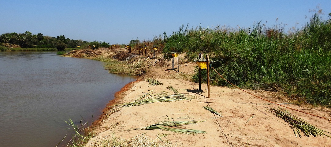 Funded by the United Nations Development Program (UNDP), Gorongosa National Park uses several inter-disciplinary strategies to promote coexistence between people and wildlife in the Buffer Zone. The Human-Wildlife Coexistence team works closely with farmers near the River Pungwe, the Park’s southern boundary. Due to its proximity to the Park, this area is a hotspot for human-elephant interactions, as both rely on the river for survival. Elephants sometimes cross the river and feed on people’s crops, either directly from the fields in growing season or from storage places after harvest.