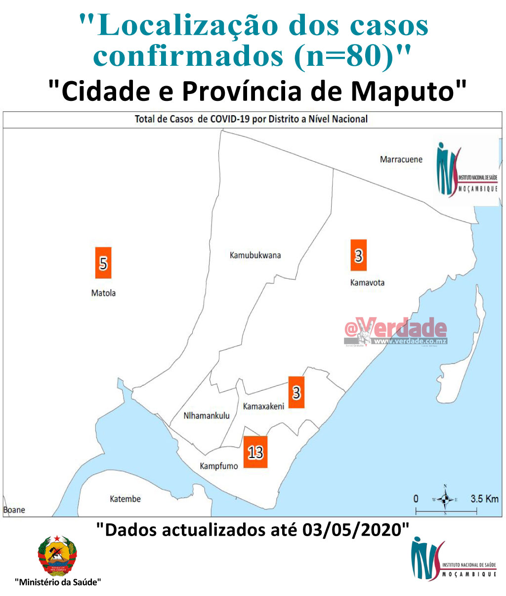 But no new cases of Covid-19 were diagnosed in Mozambique on Monday, leaving the country with 80 infected after testing another 132 samples collected in the provinces of Cabo Delgado, Nampula, Sofala, Gaza, Maputo and in the City of Maputo.