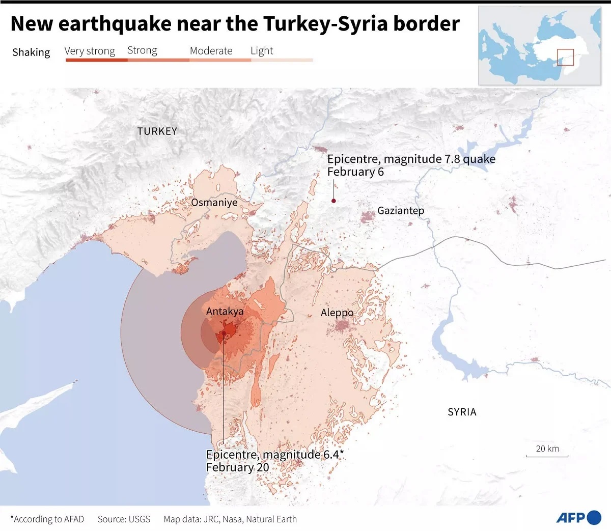 Turkey’s disaster management agency said on Twitter that a 5.8-magnitude quake followed three minutes later, with its epicentre in the Samandag district of Hatay province.