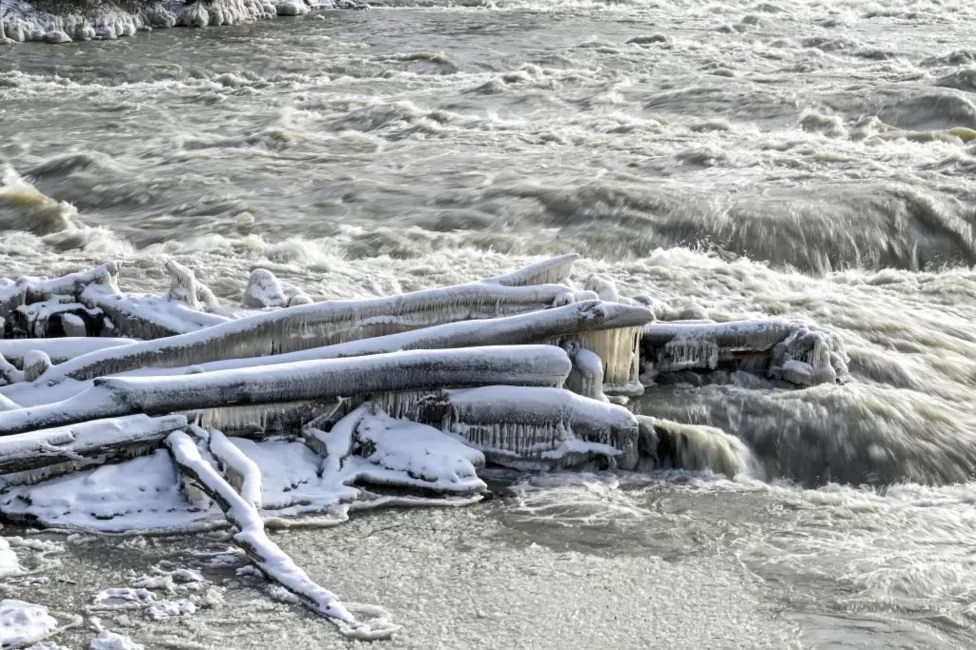 Chunks of ice and snow-capped rocks could be seen at the base of the Niagara Falls after a huge winter storm swept over the US and Canada.