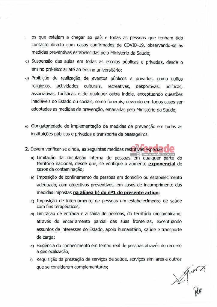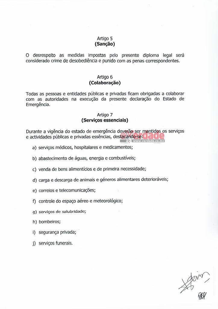 António Boene, Frelimo deputy and chairman of the Commission on Constitutional Affairs, Human Rights and Legality, recommended the representative of the Nyusi government, Minister Helena Khida, rearrange the Presidential decree: “displacement of paragraphs a), b ), c) and d) from article 4 to article 3 (…) because they are measures that limit citizens’ rights, freedoms and guarantees”.
