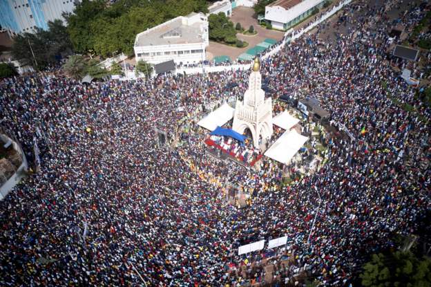 Tens of thousands of people have once again gathered in Bamako’s Independence square for the latest in a series of protests called by the influential and radical Imam, Mahmoud Dicko: