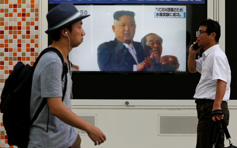 Reuters / Men walk past a street monitor showing North Korea's leader Kim Jong-Un in a news report about North Korea's nuclear test, in Tokyo, Japan, September 3, 2017.