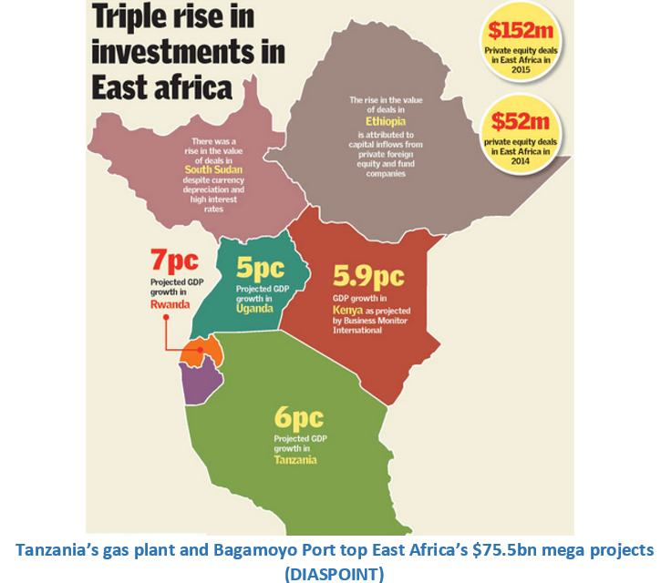 In the transport sector the top projects included Bagamoyo Mega port (Tanzania), Kenya-Uganda-Rwanda-South Sudan rail project (Kenya), Nairobi-Mombasa highway expansion project (Kenya) and new Addis Ababa International Airport (Ethiopia).