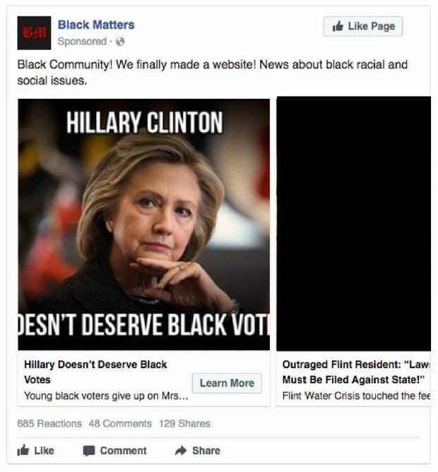 A series of posts targeted to people who liked the Russia-linked group called “Black Matters” were only shown to users in cities that had had episodes of racial unrest, including Ferguson, Missouri, Baltimore and Cleveland.