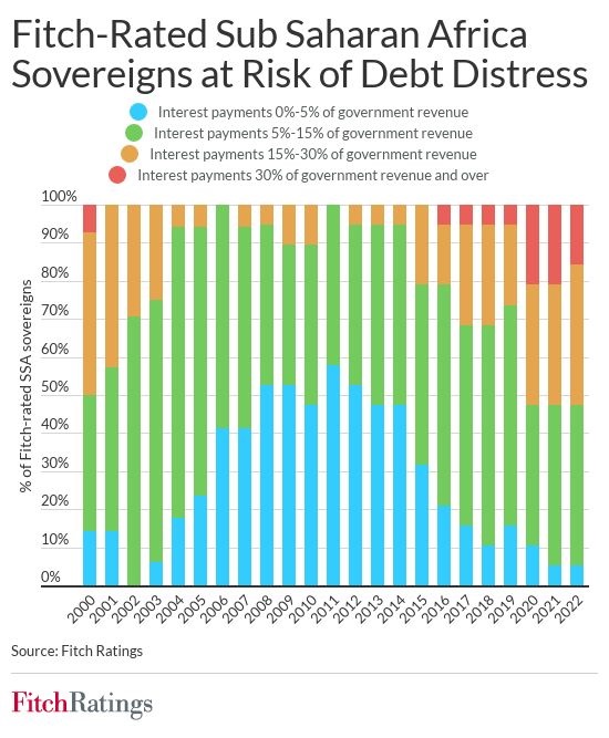 – In addition to Zambia at ‘C’, Fitch rates four SSA countries at ‘CCC’, indicating that default is a real possibility. These are Angola, the Republic of Congo, Gabon and Mozambique.